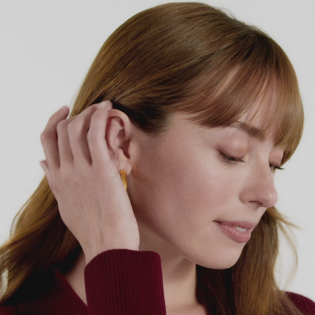 Lightly hammered hoop goes from thick to slender as it curves around.
