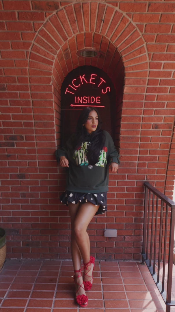 Step into the spotlight with the Licensed Forest Green 'I Feel Wicked' Sweatshirt by Queen of Sparkles. This eye-catching sweatshirt combines a rich forest green hue with a cheeky message, perfect for adding a dash of playful attitude to your casual wardrobe. Cozy and bold, it’s your go-to for lounging or turning heads with a sparkle of mischief.